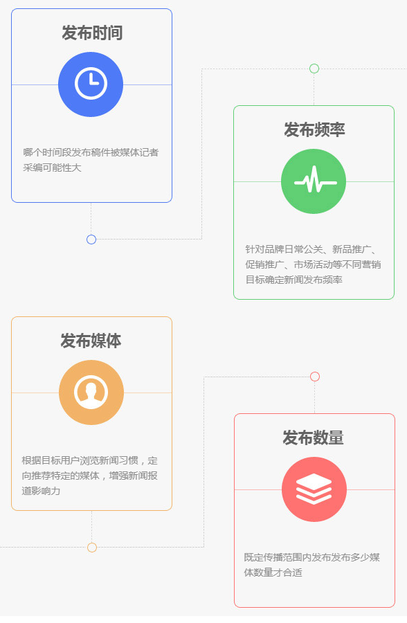 针对品牌日常公关、新品推广、 促销推广、市场活动等不同营销 目标确定新闻发布频率